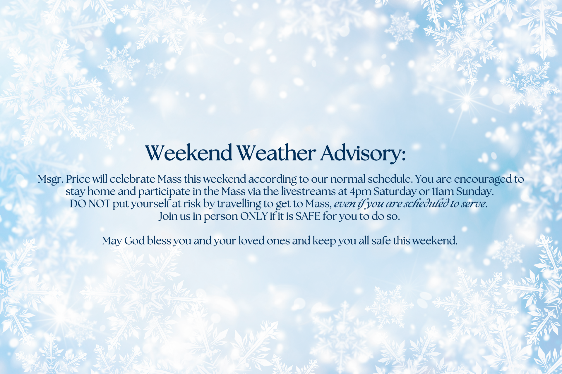 Saturday Anticipated Mass: 4:00 PM